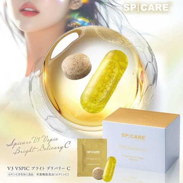 ○V3 VSPIC からビタミンCのサプリメントが登場! ⽪膚や粘膜の健康維持を助けるとともに、抗酸化作⽤を持つ栄養素ビタミンCを配合したビーズオイルカプセル。 毎⽇1袋で不⾜しがちな栄養を簡単に摂取できます。 飲みやすいカプセル状で、毎日の習慣に取り入れやすい設計で内⾯から健康的な美容をサポートします。 ○褒められる肌は、習慣から! 忙しい毎日でも続けやすい1日1袋の新習慣 美肌と健康を内側からサポートするビタミンC配合のビーズカプセルサプリメント。 毎日1袋で不足しがちな栄養を簡単に摂取できます。 ビタミンCの摂取を習慣化することで、内面から健康的な美容をサポート。(栄養機能食品※1) ※1 栄養機能食品(ビタミンC):皮膚や粘膜の健康維持を助けるとともに、抗酸化作用を持つ栄養素 ○こんな方におすすめ 1.C Lineシリーズと併用し、更なる透明感*を目指したい方。 *透明感とは、肌本来の明るさのこと 2.ビタミンCを効率的に摂取したい 3.体の疲れや肌のくすみが気になる 4.喫煙をされる方 5.日常的にストレスを感じやすい 6.1日1回の摂取で、手軽にデイリーケアしたい 7.1年中紫外線対策をしたい方。持ち運びに便利な、個包装が好み 【使用方法】 1⽇1袋を目安に、1⽇1袋を⽬安に⽔⼜はぬるま湯でお召し上がりください。 【ご使用上の注意】 ‧本品は多量摂取により疾病が治癒したり、より健康が増進するものではありません。1⽇の摂取 ⽬安量を守ってください。 ‧⾷⽣活は、主⾷、主菜、副菜を基本に、⾷事のバランスを。 ‧本品は特定保健⽤⾷品と異なり、消費者庁⻑官による個別審査を受けたものではありません。 ‧体質に合わないと思われるときは、ご使⽤を休⽌してください。 ‧原材料をご確認の上、⾷物アレルギーのある⽅は、お召し上がりにならないでください。 ‧薬を服⽤中あるいは通院中の⽅は、医師にご相談の上ご使⽤ください。 ‧乳幼児の⼿の届かないところに保管してください。 ‧妊娠中、授乳中、妊娠していると思われる⽅はご利⽤をお控えください。 ‧原材料の性質上、外観や⾊調、⾹り、味などに若⼲のばらつきが⽣じる可能性がありますが、 品質に問題ありません。 ‧開封後は賞味期限にかかわらず、お早めにお召し上がりください。 生産地:日本 サイズ:30包⼊り 1袋 20.73g(カプセル451mg×1粒 茶⾊粒240mg×1粒) 素材 :【カプセル】中鎖脂肪酸油(国内製造)、ゼラチン、⾷⽤オリーブ油、⽶油、アルガン油、オーランチオキトリウム精製オイル/ビタミンC、微結晶セルロース、シェラック、HPMC、ウコン⾊素、ビタミンE 【茶⾊粒】酵⺟エキス(酵⺟エキス、デキストリン)(国内製造)、マカ粉末、デキストリン、黒胡椒抽出物/ビタミンC、微結晶セルロース、セルロース、ショ糖脂肪酸エステル、微粒⼆酸化ケイ素 V3 VSPIC ブライト デリバリーC 30包⼊り 1袋 20.73g(カプセル451mg×1粒 茶⾊粒240mg×1粒) 6,480円